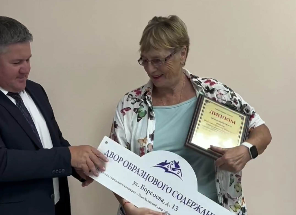 В столице Бурятии победителем конкурса «Улан-Удэнский двор образцового содержания» признан двор по улице Борсоева, 13. Управляющей организации ООО «ЖЭУ-2» вручён диплом, информационный знак «Двор образцового содержания» для размещения на фасаде дома и подарочный сертификат в строительный магазин.