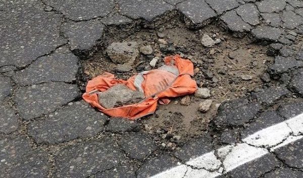 Жители Северобайкальска нашли оригинальный способ предупреждать автомобилистов о ямах на дорогах. Делают это с помощью жилетов со светоотражающими элементами. Один такой лежит на дороге, ведущей из города в посёлок Холодная, рассказали в региональном отделении Народного фронта.