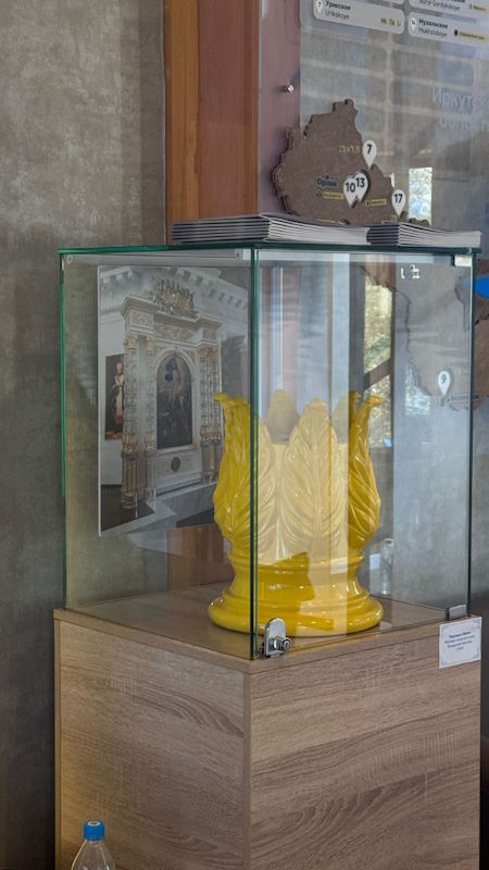 Элементы восстанавливаемого иконостаса Храма Воскресения Христова г. Кяхты – хрустальный «бочонок» и «лилия» – украсили один из залов республики Бурятия на этом форуме.