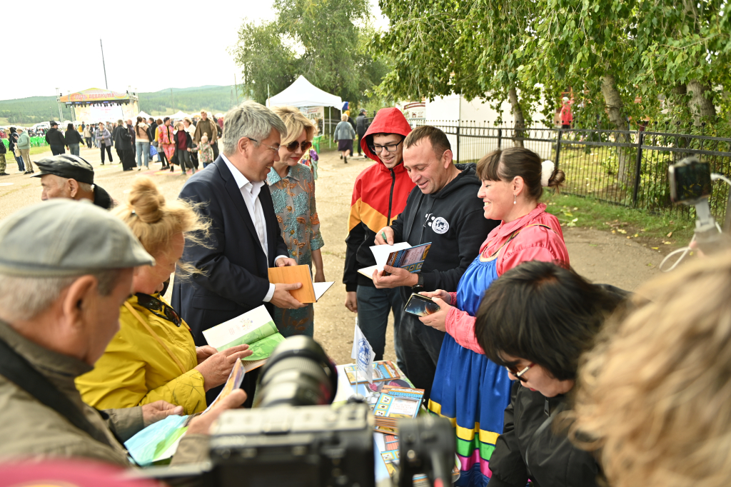 Для гостей праздника была подготовлена насыщенная программа. Торжественный день начался с праздничной службы в Древлеправославном храме святых Петра и Павла, которую провёл владыка Сергий, митрополит Сибирский. Глава Бурятии Алексей Цыденов, руководство Мухоршибирского района, герой России Иван Калашников и ветераны СВО из района возложили цветы к мемориалу павшим за Родину, почтили минутой молчания память воинов Великой Отечественной войны и воинов-земляков специальной военной операции.