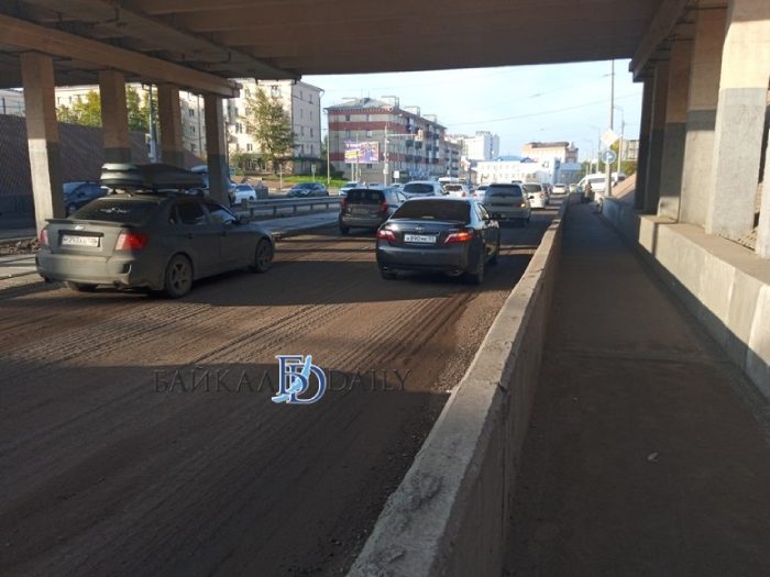 «Байкал-Daily» выяснил, что асфальт под путепроводом и развязкой к утру так и не появился. Слой асфальта по-прежнему срезан и по направлению к площади Советов, и на полосах, ведущих к Элеватору. Машины вынуждены снижать скорость на этих участках.