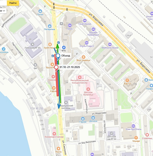 С 1 по 26 октября будет перекрыт очередной участок по ул. Смолина. Теперь уже от остановки «Виадук» до перекрёстка с улицей Партизанская. Об этом сообщает управление по информационной политике Улан-Удэ.