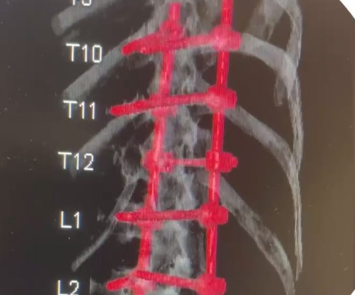 В некоторых случаях пострадавшим требуется операция. Одну такую недавно сделали жителю Бурятии нейрохирурги БСМП. Они выполнили спондилосинтез – это стабилизация повреждённых сегментов позвонков с использованием погружных имплантов. Пациенту потребовалось аж 8 штук.