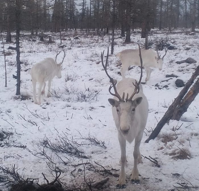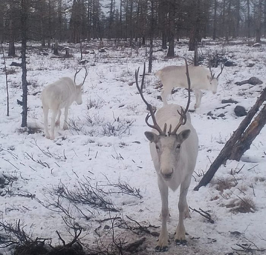 Главный инженер отдела охраны окружающей среды Минприроды Забайкальского края Владимир Федаев запечатлел на камеру красавцев белых оленей.