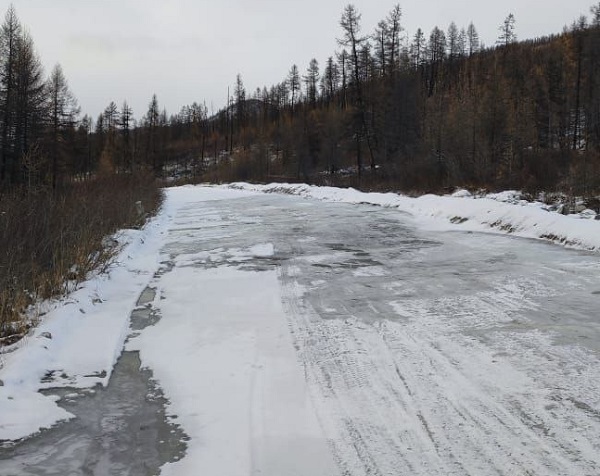 Жителей Окинского и Тункинского районов предупредили о наледи с глубокими ямами на автодороге «Монды – Орлик». Фотоподтверждение выложили в группе «Ока-инфо.24/7».