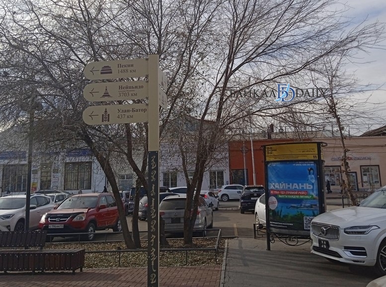 В историческом центре Улан-Удэ на стыке недавно реконструированного Александровского сада и площади Революции, которую обновили в 2020 году, появился столб со стрелками. Они указывают на юг и запад. На них написаны названия некоторых столиц и расстояние до них.