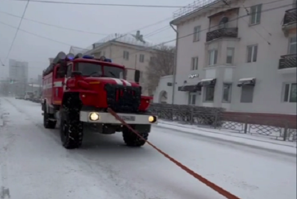 Эта история произошла днём 7 ноября в столице Бурятии. Сотрудники МЧС, возвращаясь с вызова, увидели фуру, которая забуксовала на снежной дороге на улице Коммунистическая.