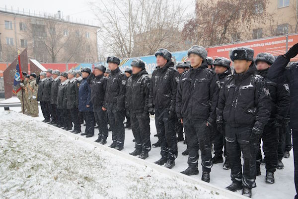 В Улан-Удэ утренний развод в батальоне вневедомственной охраны начался с минуты молчания. Затем росгвардейцы возложили гирлянду к мемориалу сотрудникам вневедомственной охраны республики Бурятия, погибшим при исполнении служебного долга.