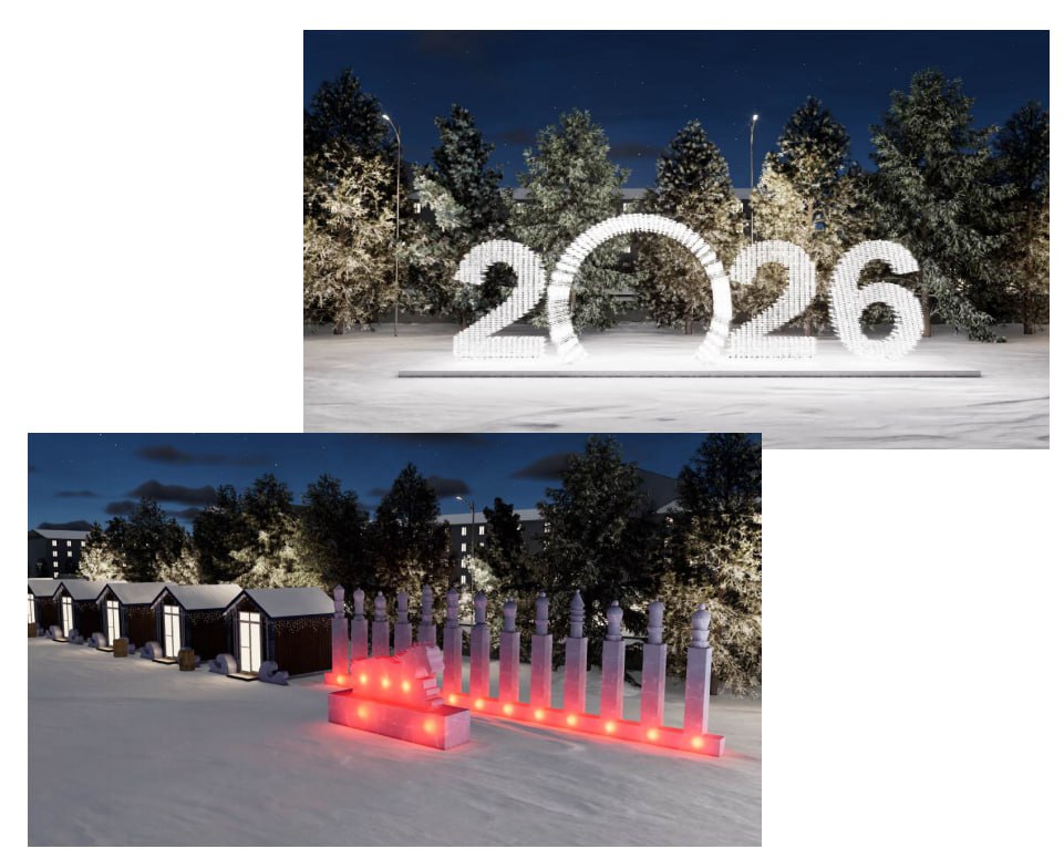 Улан-удэнцев и гостей бурятской столицы в этот раз прямо в центре города ждёт «Путешествие на Байкал». Там, согласно технической документации, появятся несколько десятков фигур изо льда. В их числе – сказочный лес из елей, подсвеченных разными цветами, медведица с медвежатами, орёл, соболь, олени и лежбище нерп, Огненная Лошадь, являющаяся символ 2026 года, 13 ритуальных коновязных столбов Сэргэ, «Байкал и Ангара», «Ледяные буузы», скульптура «Рыбак в лодке и бочки». А ещё – ледяная чаша в виде Байкала, «Хозяева Бурятии» – тангэри и их дети, воплощающие силы природы и оберегающие Байкал. Каждая скульптура – не просто украшение, а часть мифа.