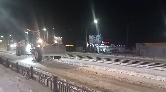 Сотрудники комбината по благоустройству всю ночь убирали снег с улан-удэнских дорог и тротуаров.
