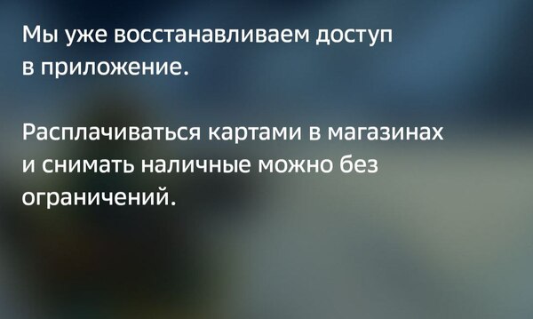 Доступ к приложению уже восстанавливают. При этом расплачиваться картами или снимать наличку в банкоматах можно без ограничений.