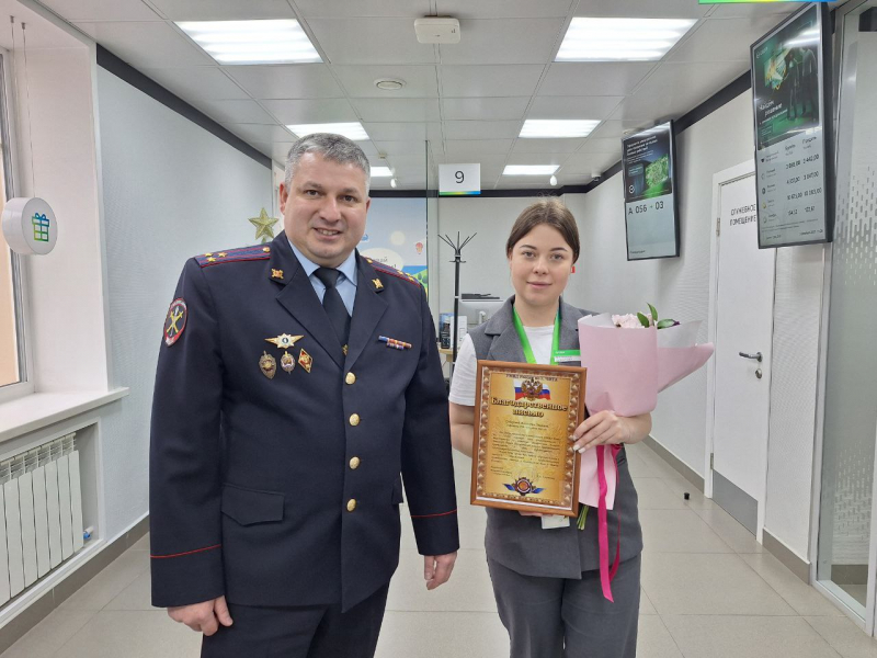 Начальник УМВД России по городу Чите Алексей Голатенко поблагодарил Викторию Сидорову за бдительное и неравнодушное отношение к пожилым людям.