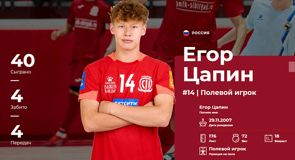 В Забайкальском крае клуб «Спартак» рассказал об успехе своего спортсмена. Егор Цапин получил вызов в расширенный состав юношеской сборной России по футзалу. 18-летний игрок отправится в Бангкок, где 18 и 20 декабря российская команда проведёт товарищеские матчи со сверстниками из Таиланда.