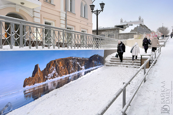 На улице Ленина замечена крутецкая фотозона с зимним Байкалом. Кто мечтал о поездке на Ольхон? Вот вам мыс Хобой во льдах. Фоткайтесь!