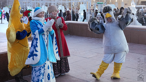 Горожанам на все праздники доступны ледяные декорации и горки, большая яркая ёлка.