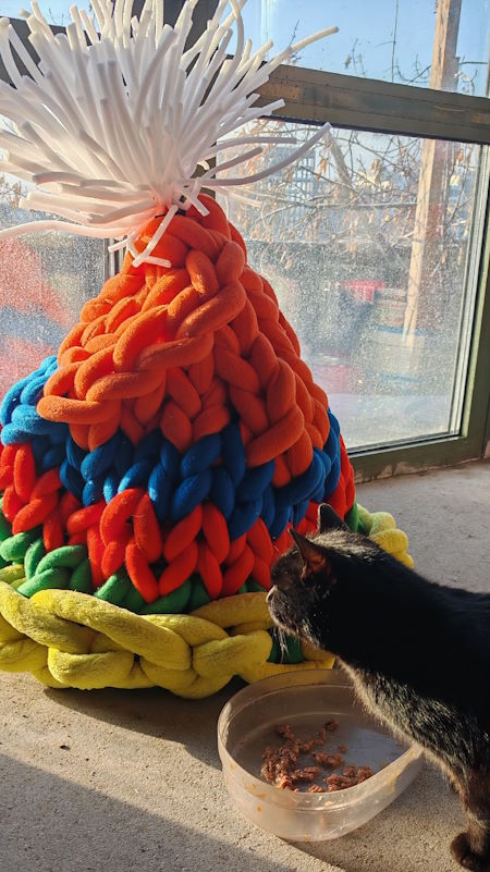 - Без примерки сложно было угадать с размером, но с такими габаритами самого одеваемого объекта, что не свяжи человеческими ручками, всё будет смотреться миниатюрно. Посмотрим, сколько продержится шапочка в условиях нашего климата, - сообщили в Доме природы.