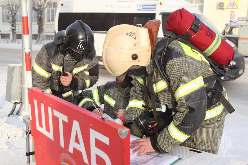 В ходе разведки помещений звеньями газодымозащитной службы все условные пострадавшие были эвакуированы по лестничному маршу на свежий воздух и переданы медицинским работникам.