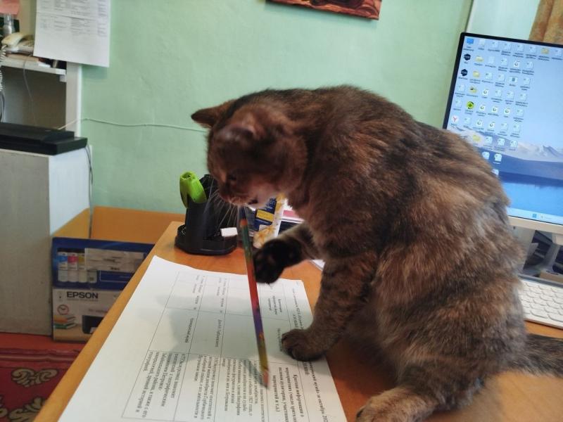 Что касается Маши, то в Петровск-Забайкальский историко-краеведческий музей она пришла котёнком 5 лет назад. Её настолько полюбили, что теперь у кошки есть своё рабочее место – мягкий стул в кабинете директора.