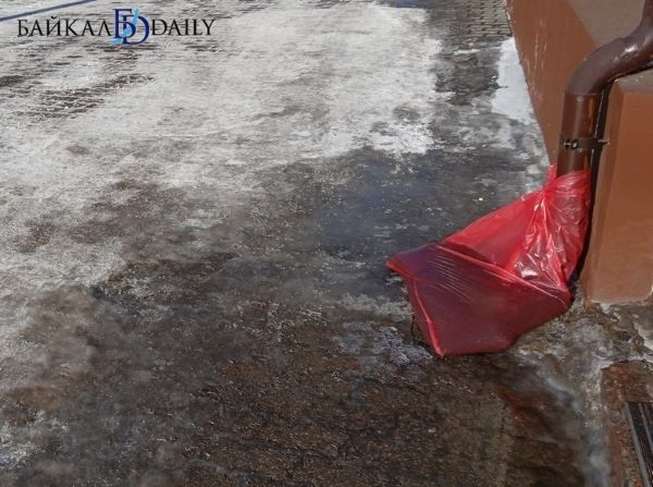 Как сообщал «Байкал-Daily», сотрудники улан-удэнского комбинат по благоустройству (КБУ) 11 февраля подвесили в центре города полиэтиленовые мешки на водосточные трубы для накопления талой воды с крыш.
