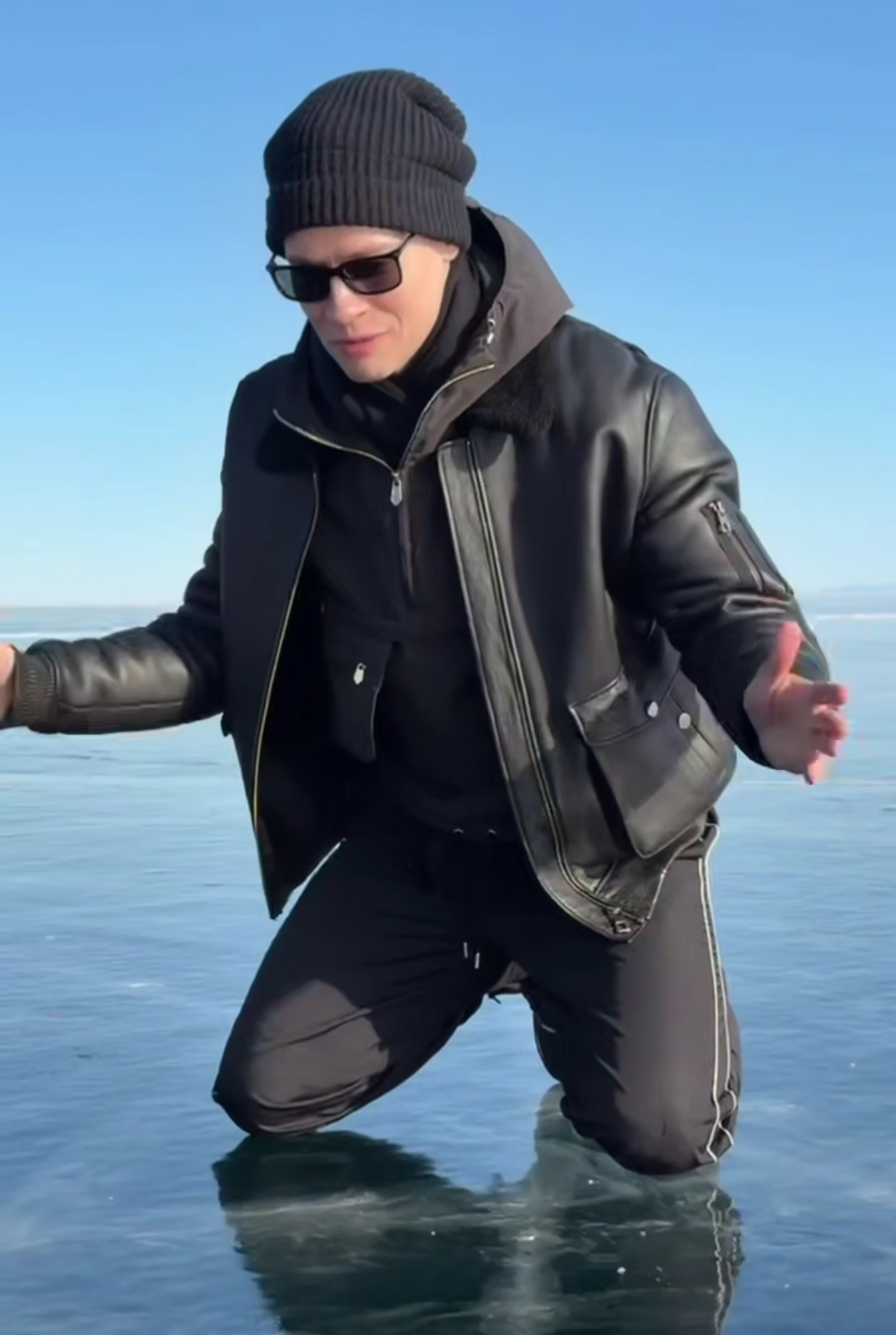 Известный российский певец Shaman (Ярослав Дронов) гастролирует с выступлениями по Сибири. Он уже выступил в Красноярске, а теперь добрался и до льда Байкала, который поприветствовал весьма своеобразным способом.