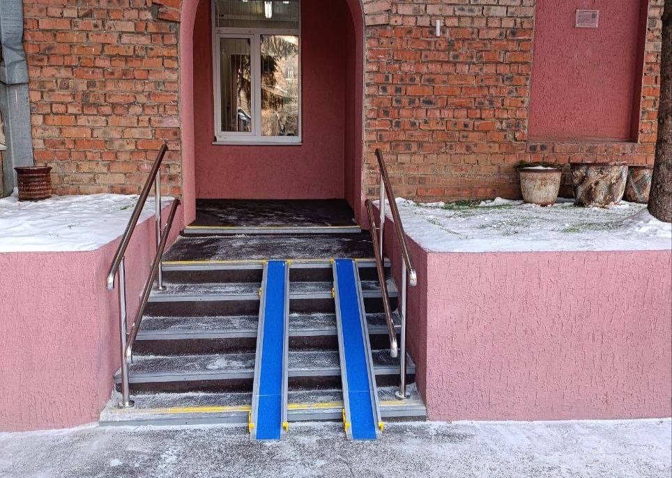 После этого обеспечили комфортные условия для инвалидов и лиц с детскими колясками: купили и установили пандусы и кнопку вызова, лестничные марши оборудовали наземными указателями.