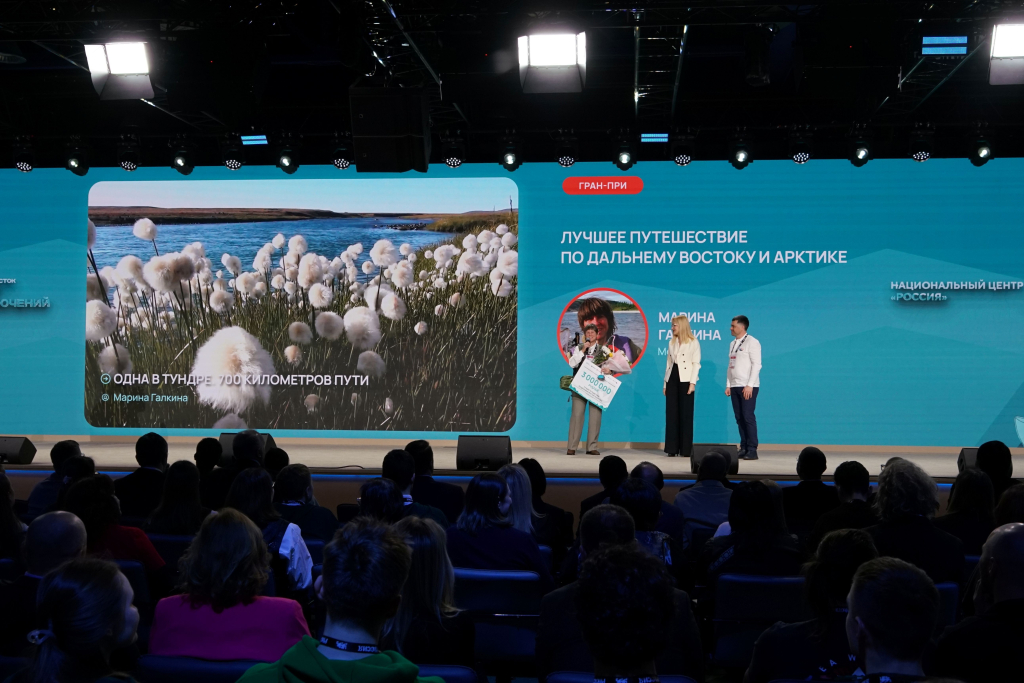 Ярким событием стало объявление победителя гран-при конкурса. Приз за лучшее путешествие по Дальнему Востоку забрала Марина Галкина. Награду победительнице вручили заместитель председателя Госдумы Ирина Яровая и члена жюри конкурса, путешественник, сноубордист Александр Мороз.