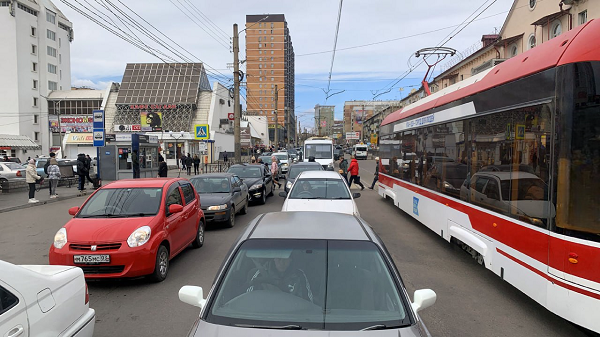 Утром 10 марта на улице Гагарина в столице Бурятии возникли пробки. Из-за этого задерживаются трамваи, следующие по маршрутам № 1 и 2.
