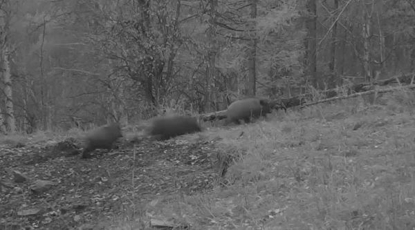 В объектив фотоловушки в Тункинском национальном парке Бурятии попали дикие кабаны. «На видео дикие кабаны устроили то ли веселые догонялки, то ли стремительное спасение от кого-то», – отметили в нацпарке.