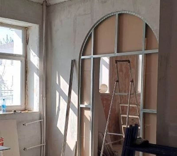 В рабочем графике строителей: полная замена систем водоснабжения и канализации, монтаж современной вентиляции и обновление электрооборудования. Идёт замена балок и ремонт перекрытий второго этажа. Рабочие проводят отбивку старой штукатурки и приступают к монтажу подвесных потолков.
