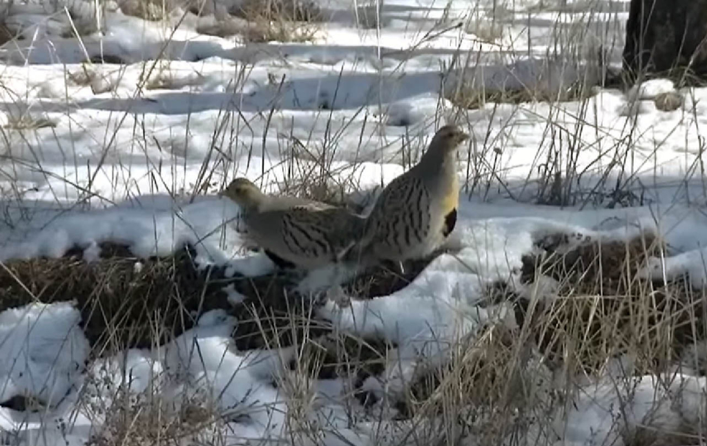 Пара бородатых куропаток спокойно гуляла по полянке, но тут горизонте появляется огромный крылатый хищник. А вдоль полянки в это время ехал УАЗ с госинспекторами.