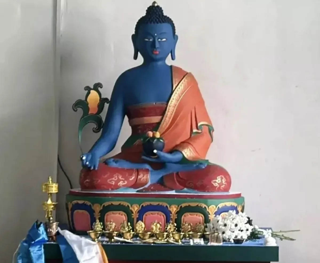 Согласно буддийским легендам, Будда медицины принял свой образ из сострадания к страдающим.