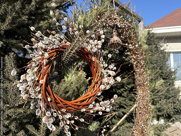 В России в богослужебной традиции пальмовые ветви заменила верба. Темно-красный цвет веток напоминает о пролитой на Кресте за спасение мира крови Христовой, а белые пушистые кисточки – убелённые жертвой Христовой человеческие души.