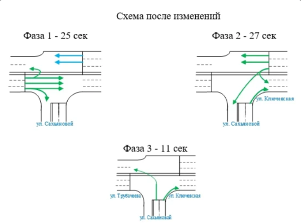 Как пояснили в комитете по транспорту, это позволит автомобилистам двигаться с улицы Ключевская в прямом направлении на 25 секунд больше, чем сейчас.