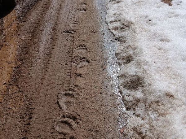 Тем временем госинспекторы заметили медвежьи следы. Косолапые начали активно искать себе пропитание после зимней спячки.