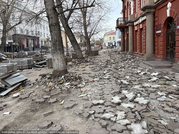 - На улан-удэнском Арбате в эти дни можно снимать настоящие хроники апокалипсиса. Сюрреализм происходящему придают балансирующие на обломках бывшей зоны отдыха многочисленные прохожие. Горожане всё так же восседают на случайно оставленной посреди Арбата скамейке. Звуки оркестра добавляют нотки абсурда. Под убранными лавочками вокруг тополей обнажились «культурные слои». Печальна участь самих тополей, — поделился увиденным фотограф Сергей Тарасенко.
