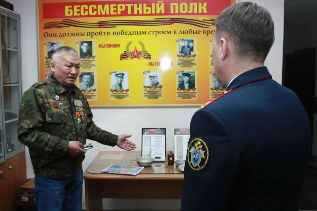 Известный поисковик Бурятии передал в музей следственного управления по республике солдатские медальоны и предметы солдатской экипировки. В День памяти жертв геноцида советского народа руководитель СУ СКР по РБ Евгений Лагацкий встретился с общественным деятелем и волонтёром поискового движения Баиром Цырендашиевым.