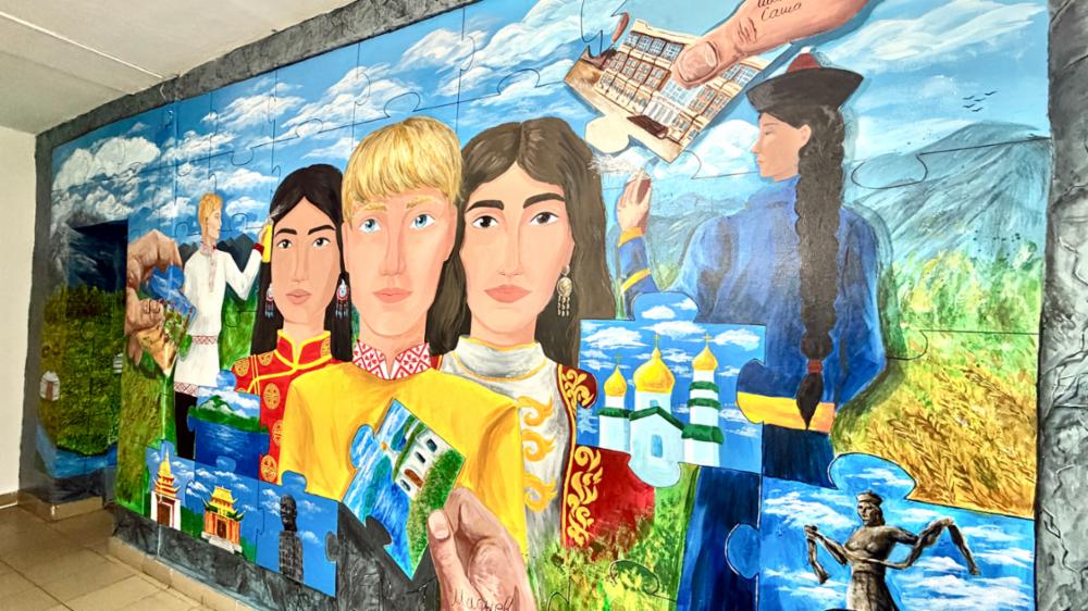 Картина реализована в рамках фестиваля «Студенческая весна-2026» (возрастное ограничение: 6+). Она занимает большую площадь стены отдела и воплощает в себе элементы культур разных народов: на изображении сплелись орнаменты, образы людей в костюмах разных наций, а также бескрайние просторы и величественные горы Республики Бурятия.