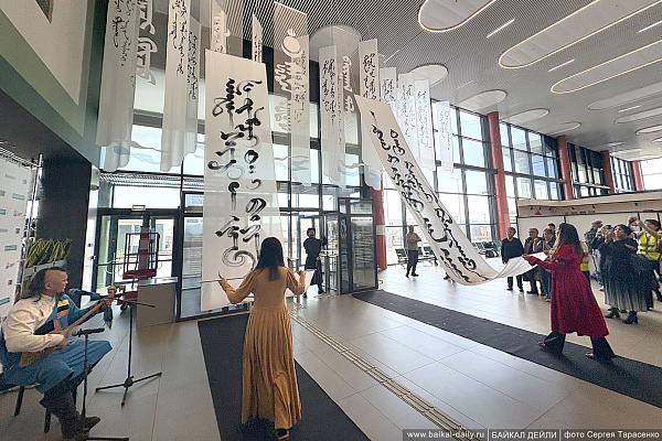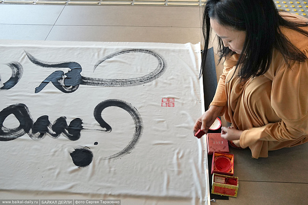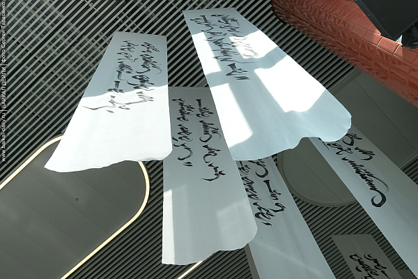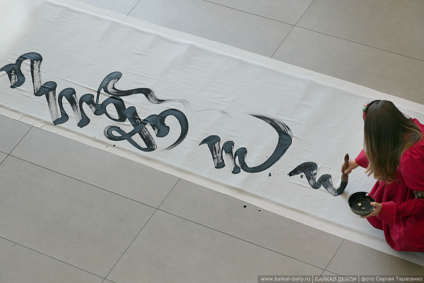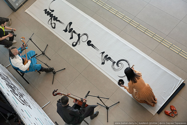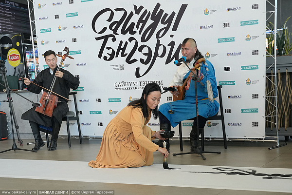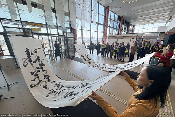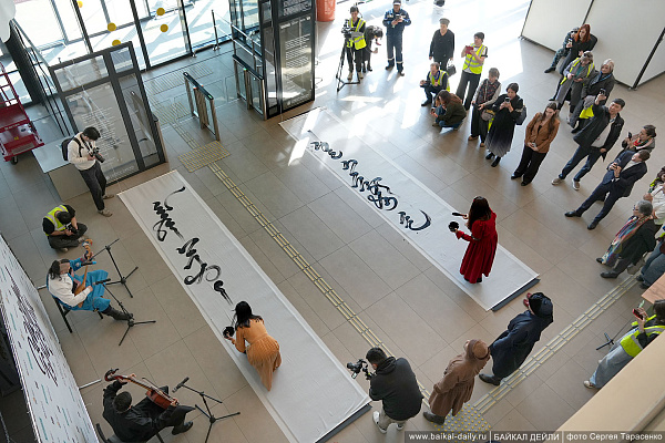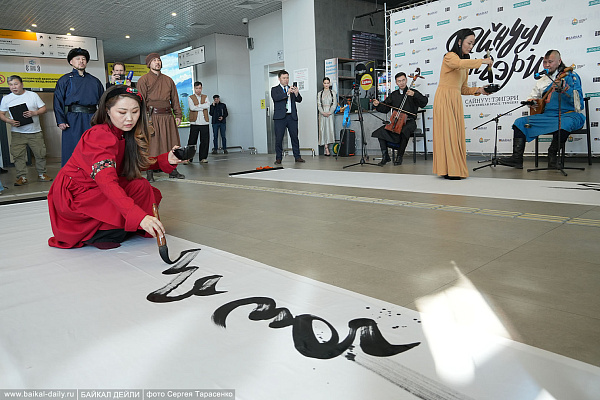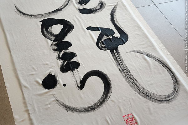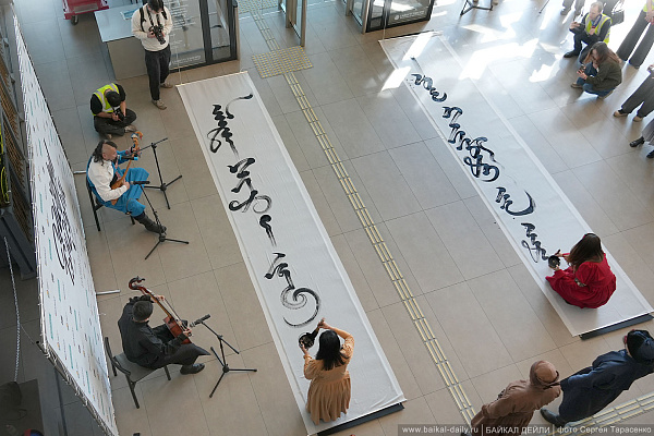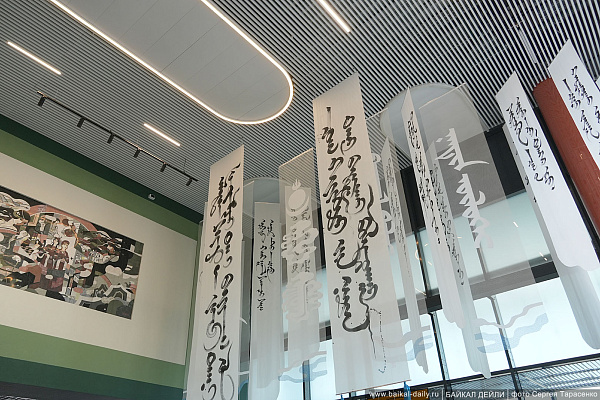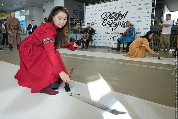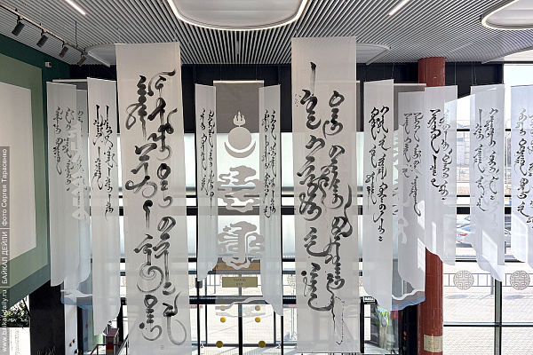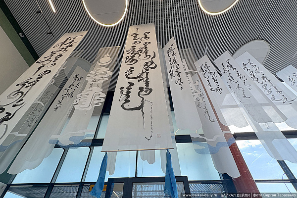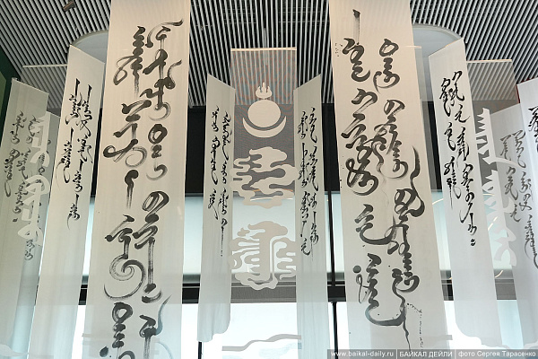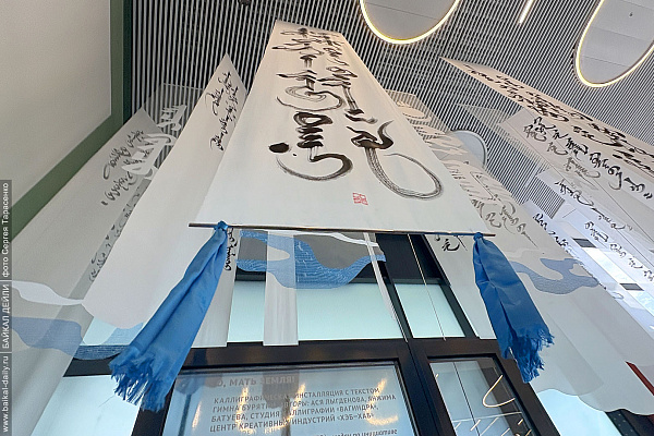 Каллиграфы написали гимн Республики Бурятия с помощью вертикальной письменности облачным стилем письма монгол бэшэг и разместили текст на 21 полотне длиной от трёх до пяти метров. Закреплённые на высоте девяти метров, полотна словно парят в воздухе. Над созданием полотен работали резиденты центра креативных индустрий «Хэб—Хаб», основательницы школы каллиграфии «Вагиндра» Ася Лыгденова и Янжима Батуева.
