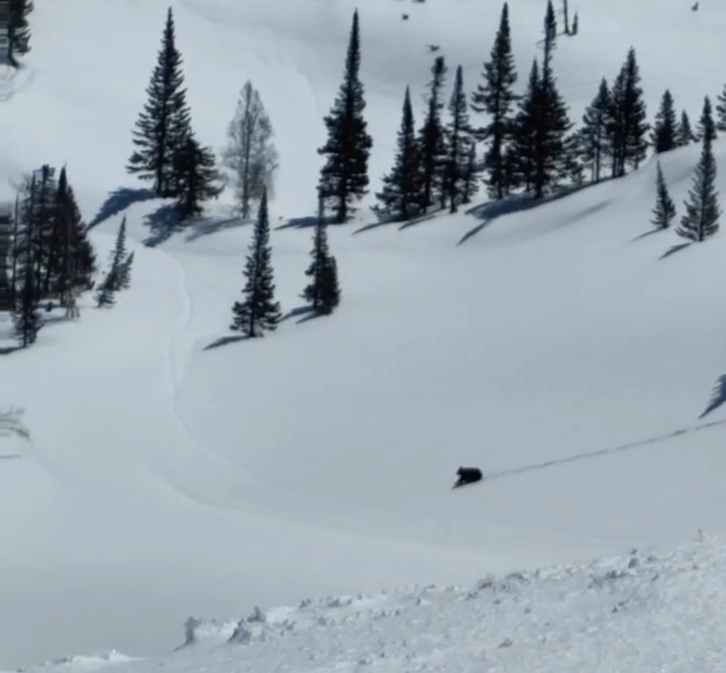 – Мы катались с вершины и увидели, как бежит медведь. Вероятнее всего он увидел и унюхал наши подъёмные следы, и испугался. Он решил, что нужно бежать как можно дальше вниз. Мы ещё, конечно, покричали на него, – рассказали очевидцы.