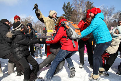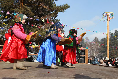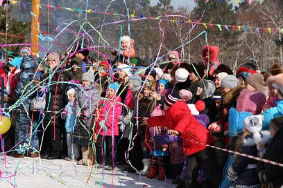 Здесь зиму провожали катаниями и играми, шутками и прибаутками. Как сообщает управление по информационной политике Улан-Удэ, в программе празднования были театрализованные представления, конкурсы, выступления творческих коллективов, «Блинные гонки», «Стенка на стенку», «Ледовый столб» и множество других потех.