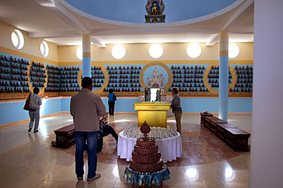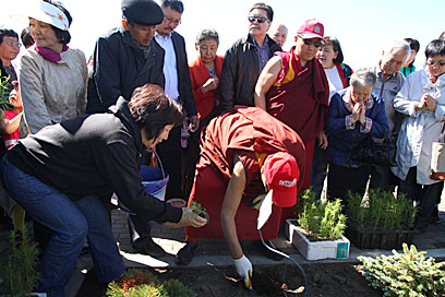 Как сообщалось ранее, сегодня с утра досточтимый Ело Ринпоче проводил ритуал четырёхчастного подношения Арья Таре – Мандал Шива. Он собрал полный зал – порядка 200 человек. А после ритуала участники отправились садить цветы.