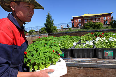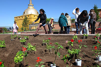 В дацане сообщили, что высажено 30 тысяч цветов. Саженцев, которые, к слову, были выращены своими силами, действительно привезли несколько машин. Они украсили дорожки вокруг здания, и клумбы перед ним.