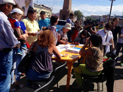 Сегодня на митинге прошёл сбор подписей граждан в поддержку Валерия Доржиева.