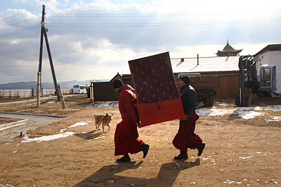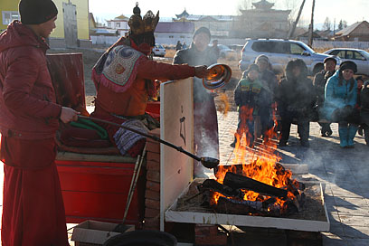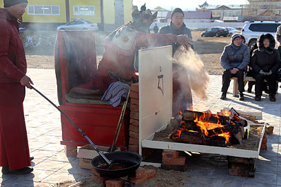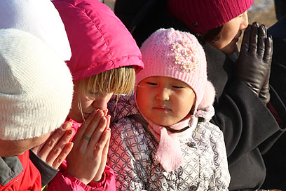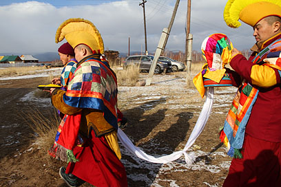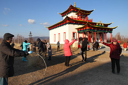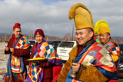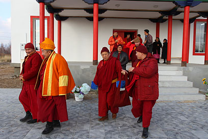 Также во время молебна были освящены первые четыре статуэтки – уменьшенные копии скульптуры «Маленький Будда» Даши Намдакова, подаренной автором Иволгинскому дацану в 2010 году и установленной в стеклянном бумхане рядом с Гунриг дуганом.