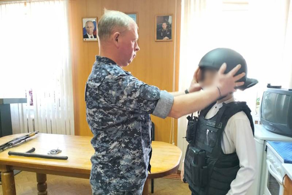 Школьники с удовольствием примеряли на себя роль росгвардейцев, экипируясь в бронежилеты и шлемы, рассматривали служебное оружие и оборудование патрульного автомобиля.