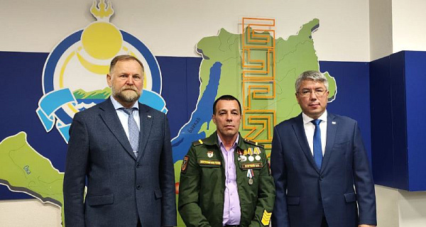 22 октября глава Бурятии Алексей Цыденов и председатель правления Всероссийского общественного движения «Отцы России» Андрей Коченов вручили медаль «Отец солдата» жителю республики Андрею Вторушину.