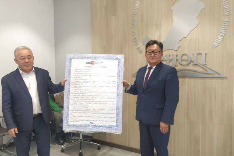 Директор республиканского центра «Бэлиг» Баир Балданов вручил руководителям муниципальных отделов и управлений образования стенды «Һурагшын ёһо журам» (Кодекс ученика).