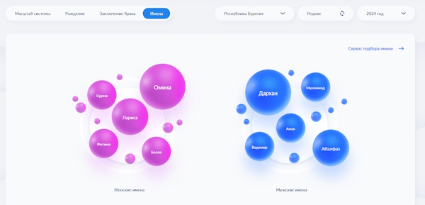 Самыми редкими среди мужских имён в Бурятии в уходящем году стали Мухаммед, Дархан, Абалфаз и Аман. Наиболее редкими женскими именами оказались: Одона, Омина, Белла, Фотима, Лариса.