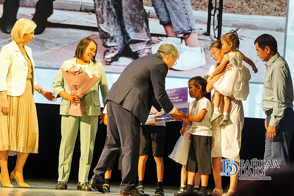 На церемонии открытия первый замминистра труда России Ольга Баталина и глава республики Алексей Цыденов вручили призы и сертификаты семьям-победителям всероссийских и региональных конкурсов.