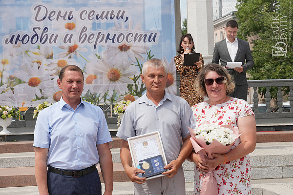 Также состоялось награждение семей общественной наградой – медалью «За любовь и верность». Она учреждена организационным комитетом по проведению Дня семьи, любви и верности в России. Медалью награждаются граждане России – супруги, зарегистрировавшие заключение брака не менее 25-ти лет назад, кто получил известность среди сограждан крепостью семейных устоев, кто на протяжении многих лет сохранил любовь и верность, кто воспитал детей достойными членами общества.